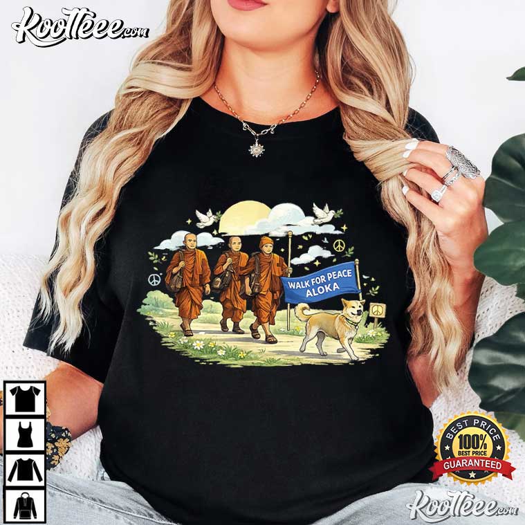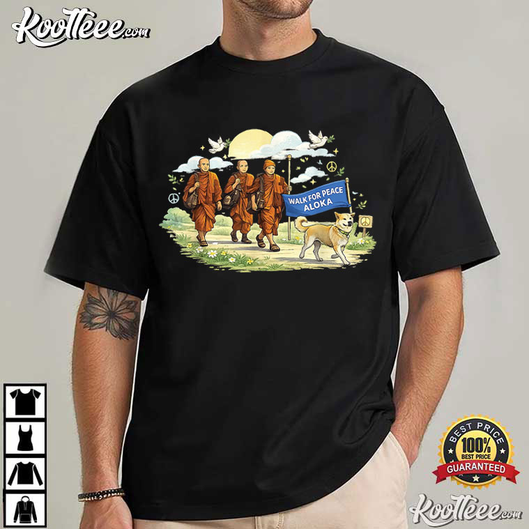 Walk For Peace Monks With Aloka Dog T-Shirt